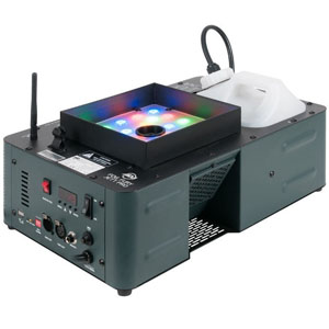Machine à fumée : flammes colorées via 28 LEDs de 3W(6 rouges, 7 vertes, 6 bleues, 3 ambres et 6 UV) +4 mètres en l’air.