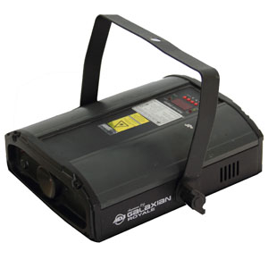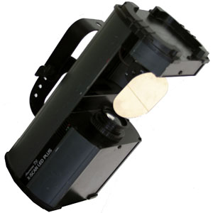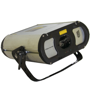 Projecteur à effet Dynamic. Un faisceau à gobo est projeté sur un miroir motorisé.